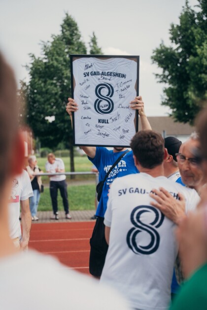 Im Anschluss wurde es emotional: Mehrere scheidende Spieler wurden verabschiedet, darunter auch Trainer Johannes Kull, der seine Trainertätigkeit beendet, dem Verein jedoch als Spieler erhalten bleibt. Der SV Gau-Algesheim würdigte sein langjähriges Engagement mit viel Applaus und Dankesworten.